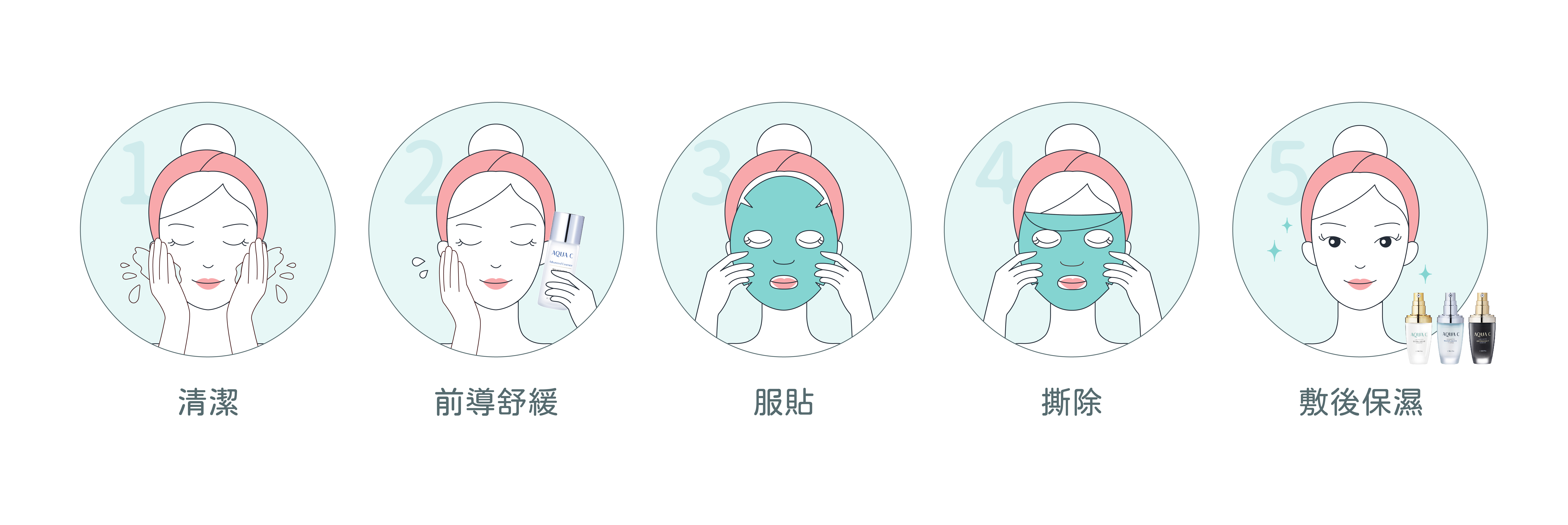 📍 日常護理型:配合日常保養流程,於臉部清潔後,先使用化妝水擦拭全臉,在依照面膜使用步驟進行敷臉,每周固定敷2 – 3次。
