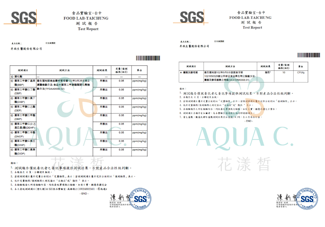 SGS檢驗報告-日光美顏飲