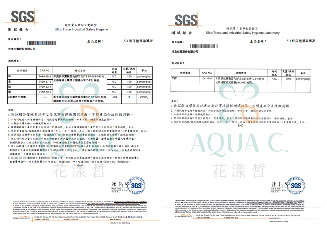 SGS檢驗報告-5D玻尿酸淨柔慕斯