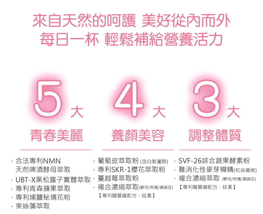 • 養顏美容、青春美麗、每日營養補給。