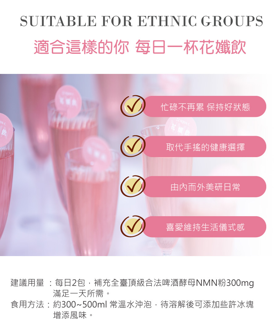• 適用:喜愛 NMN 者、注重保養與活力維持者。