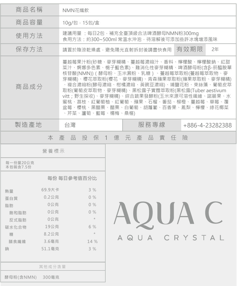 • 嚴選專利來源 NMN × 啤酒酵母配方。